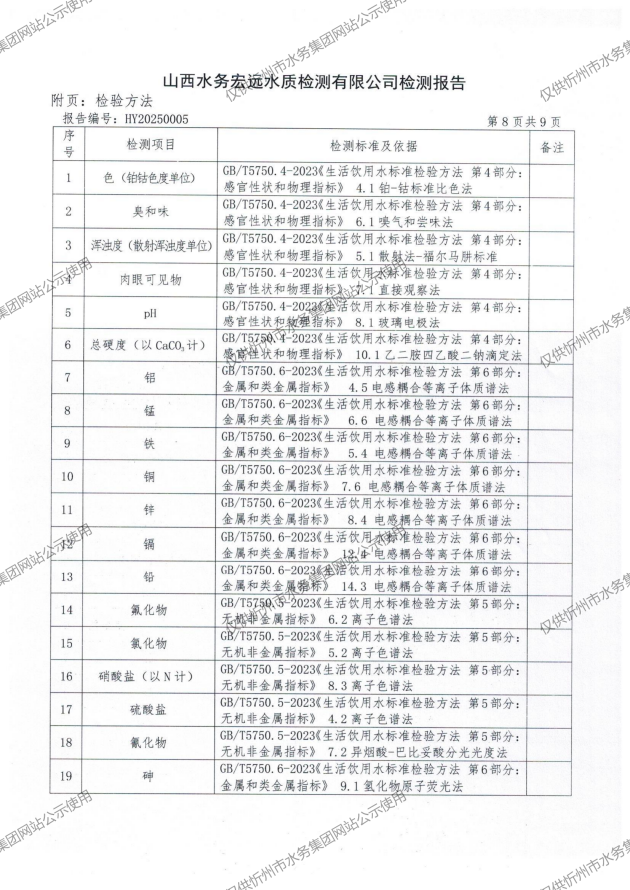 忻州城區(qū)公共供水水源水、出廠水、管網(wǎng)水、管網(wǎng)末梢水2025年01月份水質(zhì)信息公示