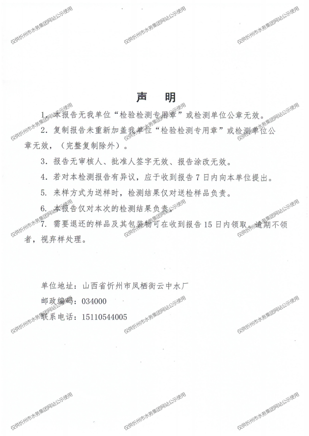 忻州城區(qū)公共供水水源水、出廠水、管網(wǎng)水、管網(wǎng)末梢水2025年4月份水質(zhì)信息公示