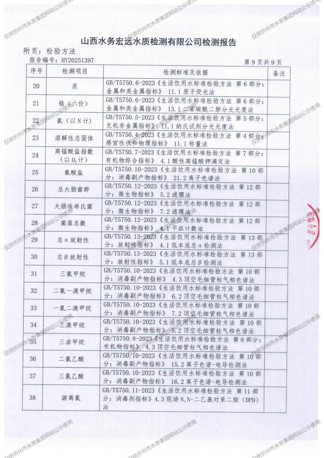 忻州城區(qū)公共供水水源水、出廠水、管網(wǎng)水、管網(wǎng)末梢水2025年11月份水質(zhì)信息公示