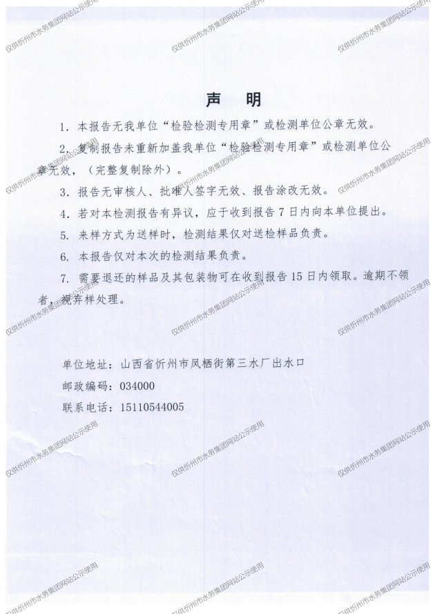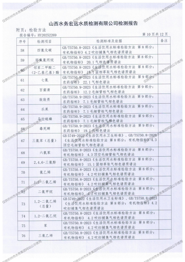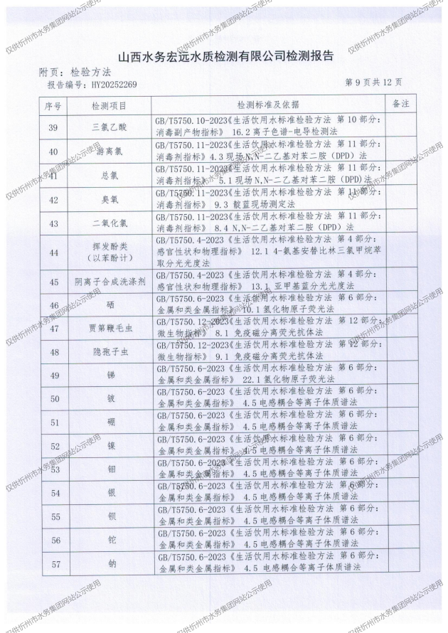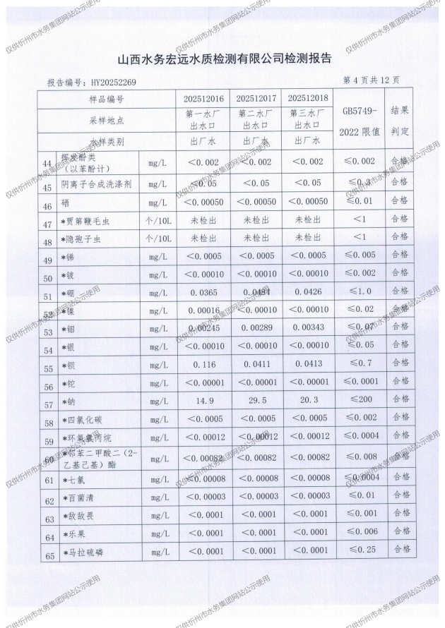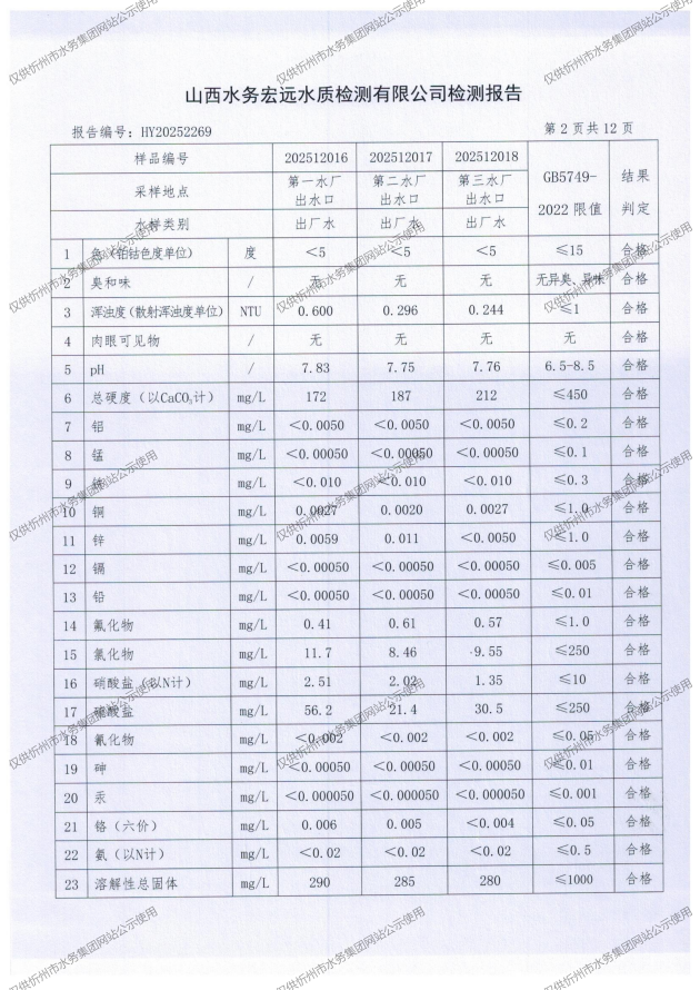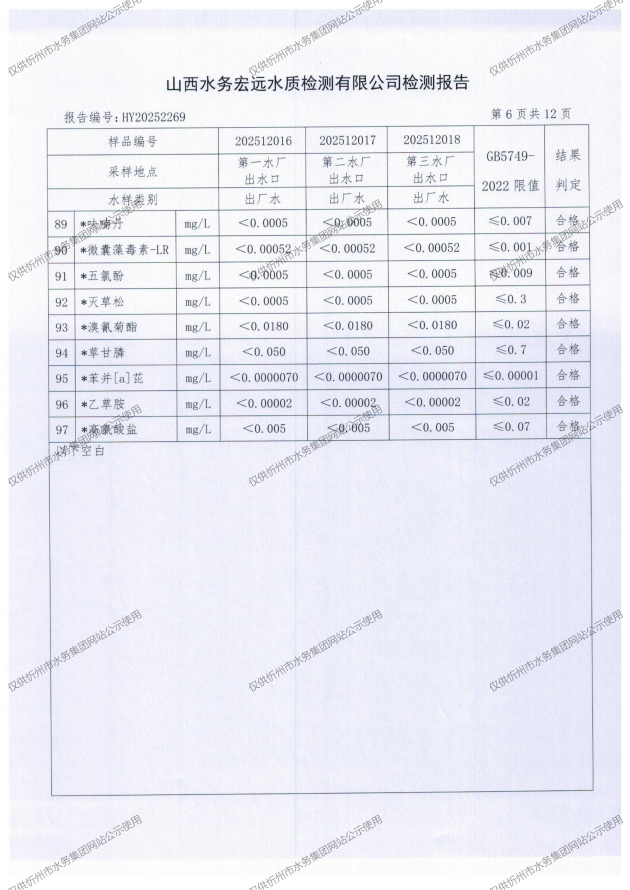 2025年忻州城區(qū)公共供水南水廠、三水廠、云中水廠出廠水97項水質全分析