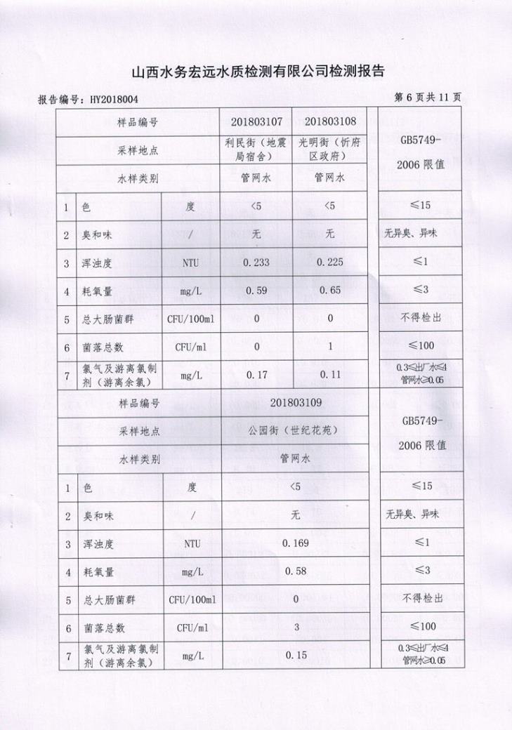 忻州城區(qū)公共供水水源水、出廠水、管網(wǎng)水、管網(wǎng)末梢水2018年3月份水質(zhì)信息公示