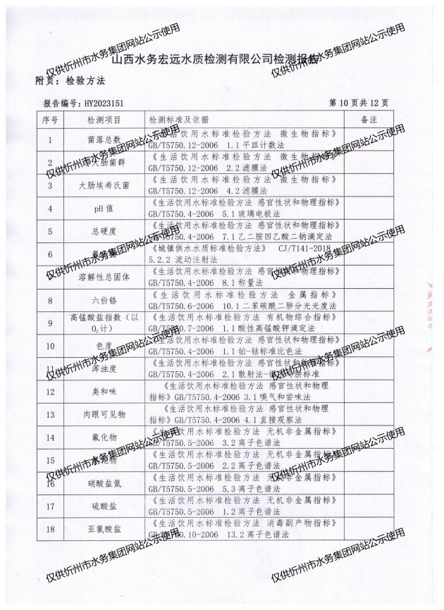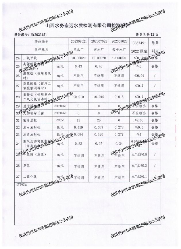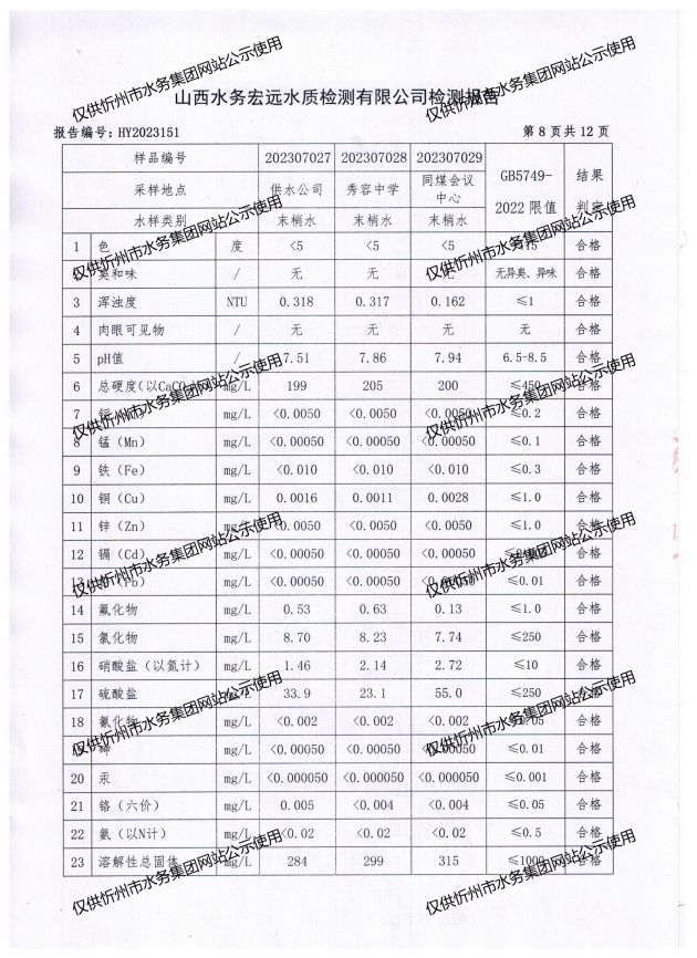忻州城區(qū)公共供水水源水、出廠水、管網(wǎng)水、管網(wǎng)末梢水2023年7月份水質(zhì)信息公示